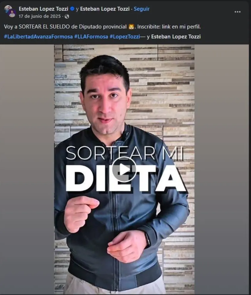 El diputado provincial Esteban López Tozzi presentó su renuncia a La Libertad Avanza en Formosa en un contexto de creciente tensión interna. El motivo sería evitar el reclamo que le hacen los propios afiliados y militantes libertarios, de que cumpla su promesa de donar el sueldo de diputado provincial.